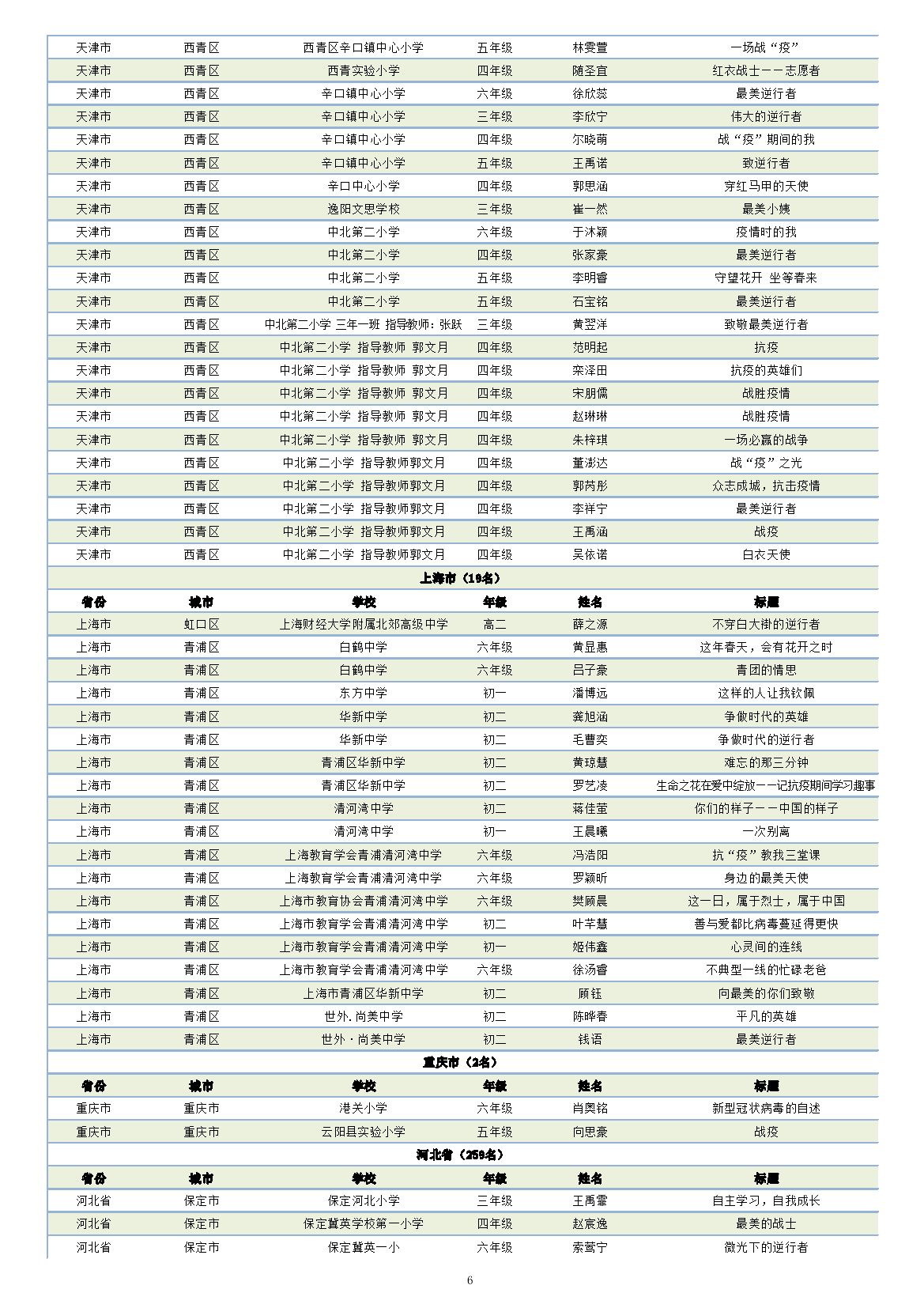 全国中小学生抗“疫”作文公益征集活动获奖名单公示(银奖)
